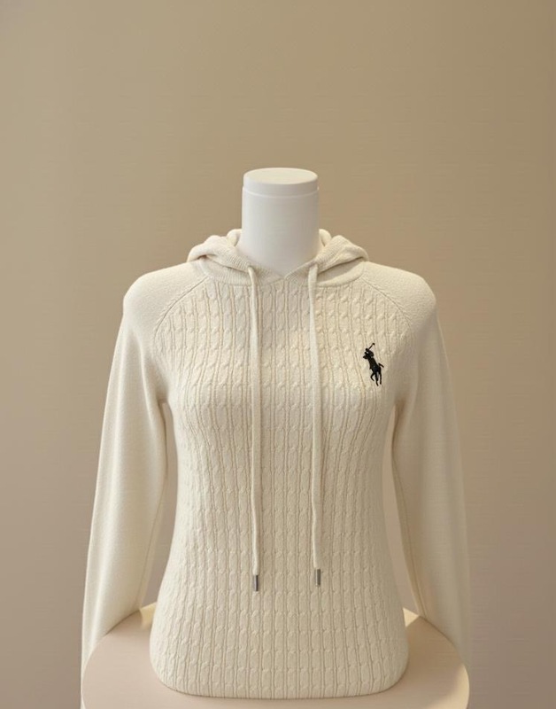 تصميمها يتميز بأكمام طويلة، وياقة مزودة برباط للتحكم في المظهر، وشعار صغير مطرز باللون الأسود يزين الصدر، وطاقية من الخلف