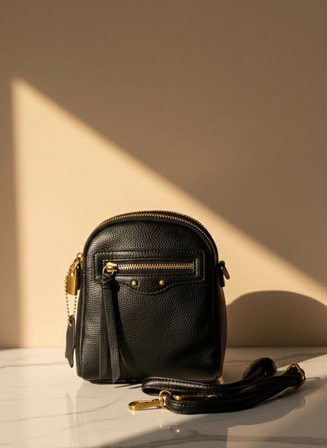 شنط كروس من الجلد، مع سحاب للإغلاق، وجيب أمامي، وحزام قابل للفصل، مصحوبة بحزام أصغر مطابق مع مشبك ذهبي