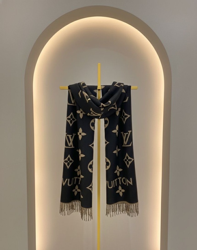 اضيفي لمسة فاخرة لإطلالتك مع شال Louis Vuitton الكلاسيكي بتصميمه الأيقوني. الشال مصنوع من خامة ناعمة ودافئة عالية الجودة، ومزيّن بنقشة المونوغرام الشهيرة التي تمنحك ستايل راقٍ ومميز في كل مناسبة