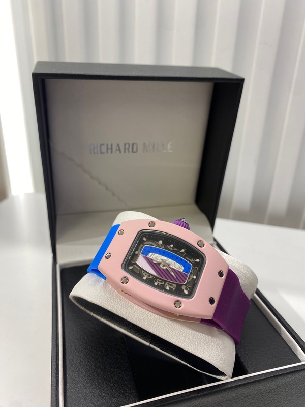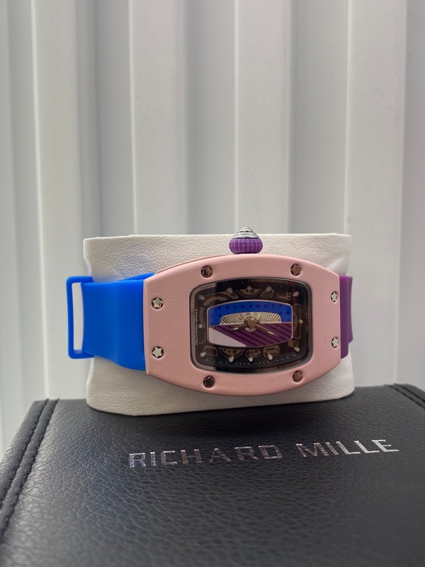 ساعة ريتشارد ميل بتصميم أيقوني جريء، تجمع بين الفخامة العالية والحضور القوي. إطار مرصّع بالأحجار اللامعة بعناية، مع علبة مميزة تعكس دقة التفاصيل والرقي. سوار عملي ومريح، والساعة بتيجي مع علبتها الفخمة، قطعة ملفتة بتعطي هيبة وأناقة استثنائية، ومثالية للي بحبوا التميّز والساعات اللافتة