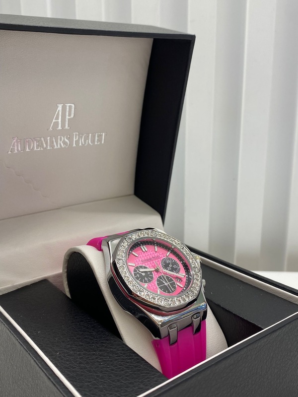ساعة فاخرة بتصميم راقٍ يعكس الذوق الرفيع، بعلبة معدنية لامعة وإطار مرصّع بحجارة براقة تضيف لمسة من الفخامة اللافتة. الميناء أنيق بتفاصيل دقيقة مع عدّادات كرونوغراف تعطيها طابعاً عملياً وعصرياً بنفس الوقت. السوار مريح بتصميم عصري يكمل أناقة الساعة ويجعلها مناسبة للإطلالات اليومية والرسميّة. تأتي داخل علبة أنيقة تضيف قيمة إضافية للتجربة وتبرز فخامتها