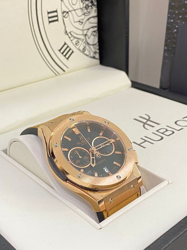 ساعة هوبلت (Hublot) هي ساعة ساعات فاخرة سويسرية تجمع بين التصميم الجريء والابتكار التقني. تُعرف بأسلوبها المميز الذي يدمج بين مواد غير تقليدية مثل الذهب، السيراميك، الكربون والمطاط، مع شكل علبة مستوحى من “الفتحة البحرية (الـ Hublot)” التي تمنحها طابعًا قويًا ومميزًا. تتميز بدقة عالية وحرفية صنع راقية تبرز في كل تفاصيلها، مما يجعلها قطعة فاخرة تعبر عن القوة والأناقة العصرية في الوقت نفسه