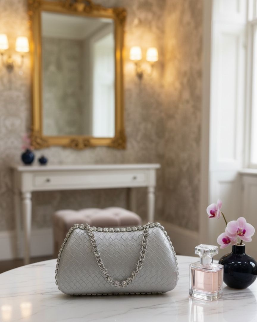 شنطة رسمية أنيقة بتصميم راقي، بتضيف لمسة فخامة لأي إطلالة. مناسبة للمناسبات والطلعات الرسمية، عملية وخفيفة وبتكمل اللوك بكل بساطة
