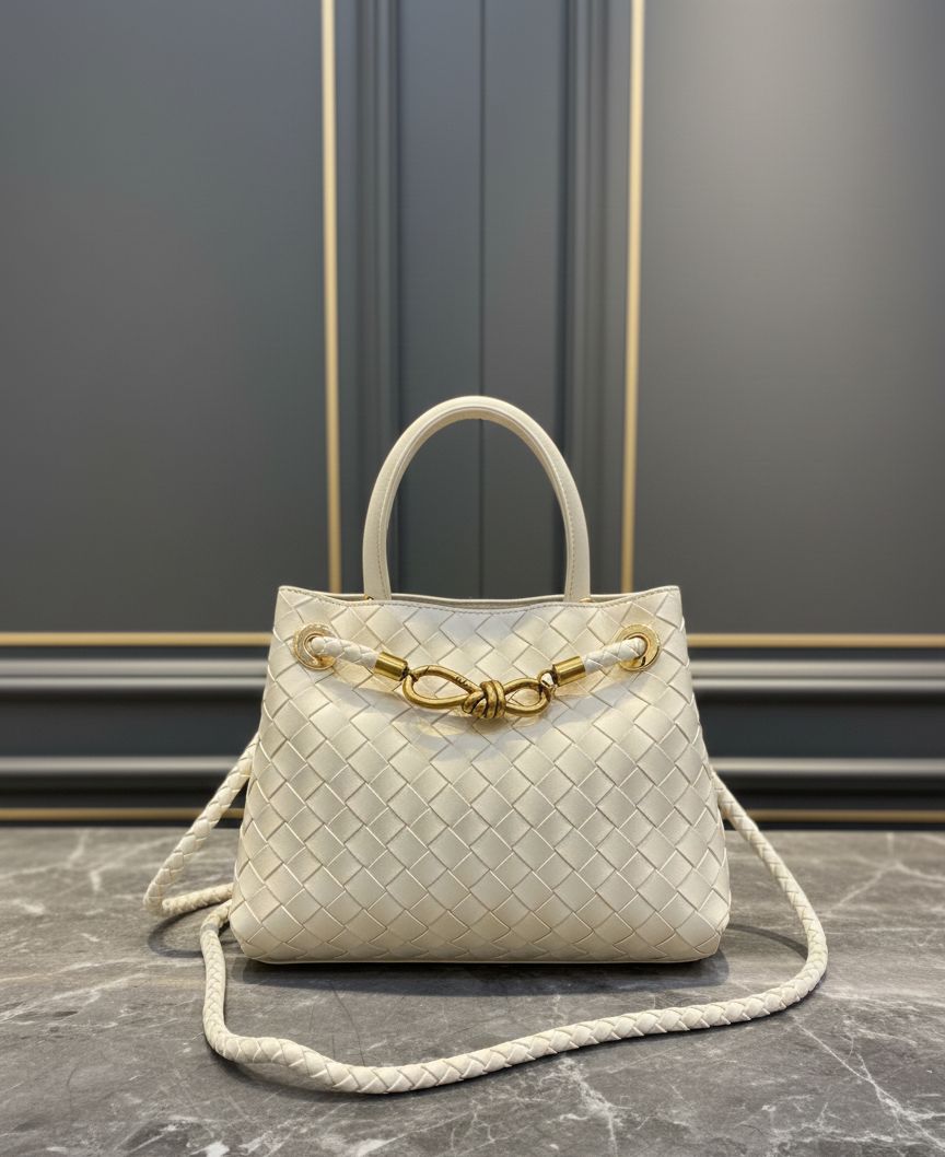 شنطة ستايل فاخر بتصميم جلد مجدول بعناية، بتجمع بين الأناقة والبساطة. مزينة بتفصيل معدني أنيق على الواجهة بيعطيها لمسة فخامة مميزة. عملية للاستخدام اليومي وبتزبط للمناسبات، معها يد علوية وحزام طويل لراحة أكبر، خيار مثالي للي بتحب الذوق الراقي والستايل المرتب