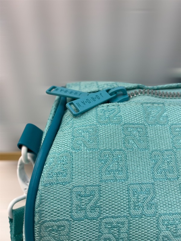 مصنوع من خامة متينة عالية الجودة بنقشة أنيقة ولمسة فاخرة، مع سحّابات قوية تضمن سهولة الاستخدام. تتميز الحقيبة الكبيرة بمساحة داخلية واسعة لحفظ الملابس والأغراض الأساسية، بينما توفر حقيبة الظهر جيوبًا عملية لتنظيم المتعلقات الشخصية. يتوسط التصميم شعار مميز يضفي طابعًا رياضيًا عصريًا