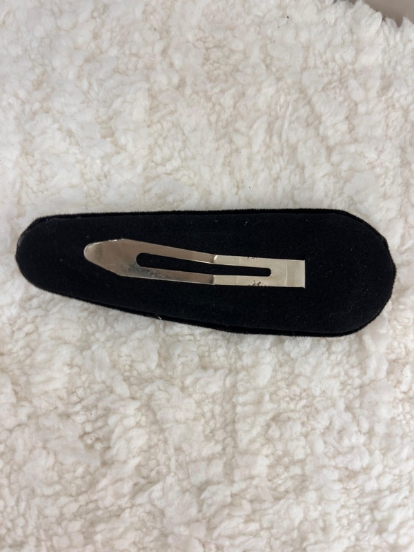 مشبك شعر مصمم بتصميم عصري انيق من شانيل باللون الاسود على الجنب علامة شانيل ذهبي