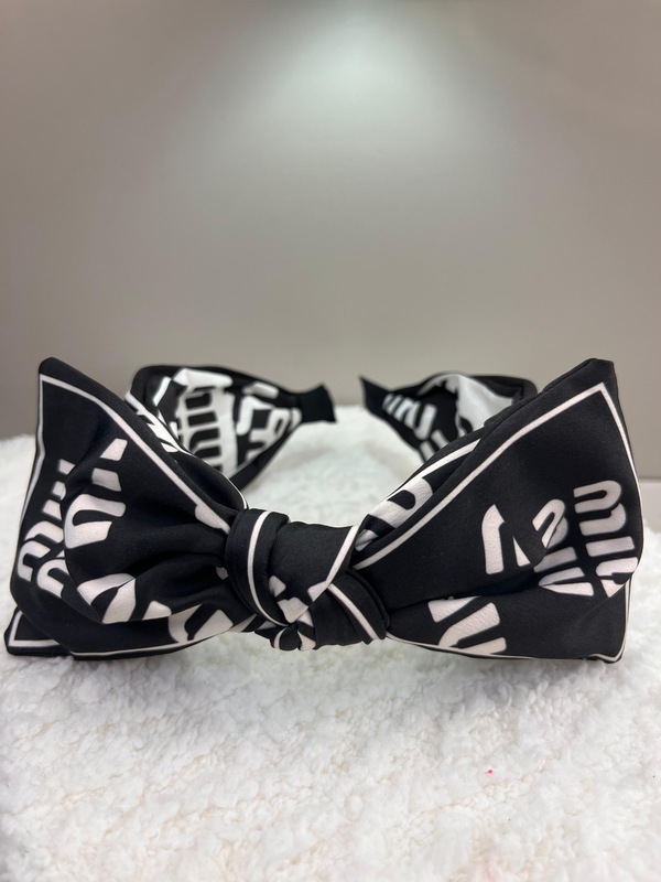 طوق miu miu بتصميم فيونكة تتميز هذه بتصميمها العصري والفريد، مع نمطها الأبيض والأسود الجريء،