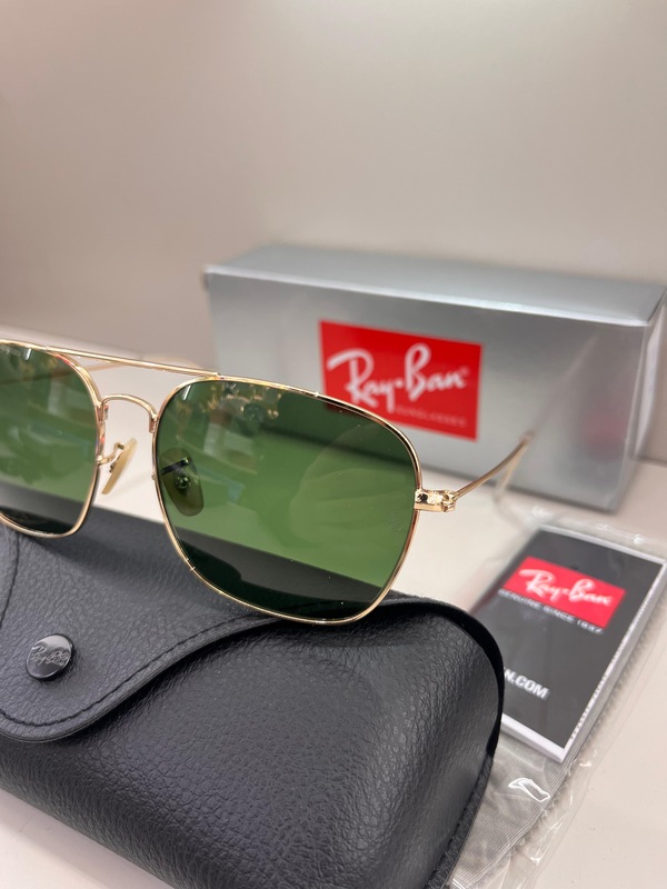 نظارة شمسية Ray-Ban تأتي بإطار معدني ذهبي أنيق وعدسات خضراء تمنح رؤية مريحة مع تقليل الوهج والحفاظ على دقة الألوان.