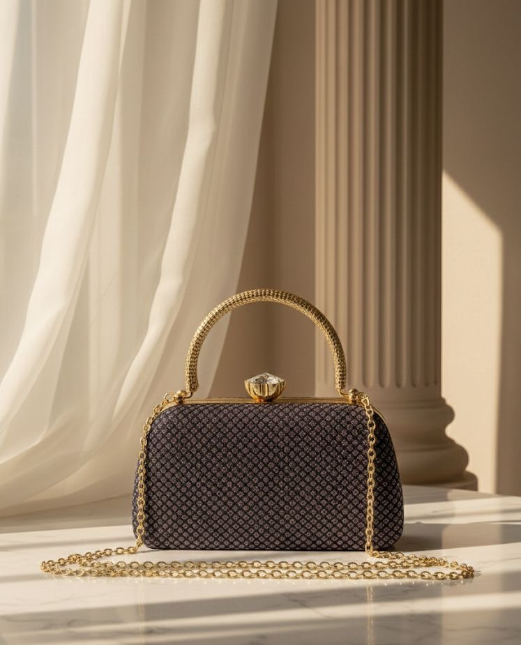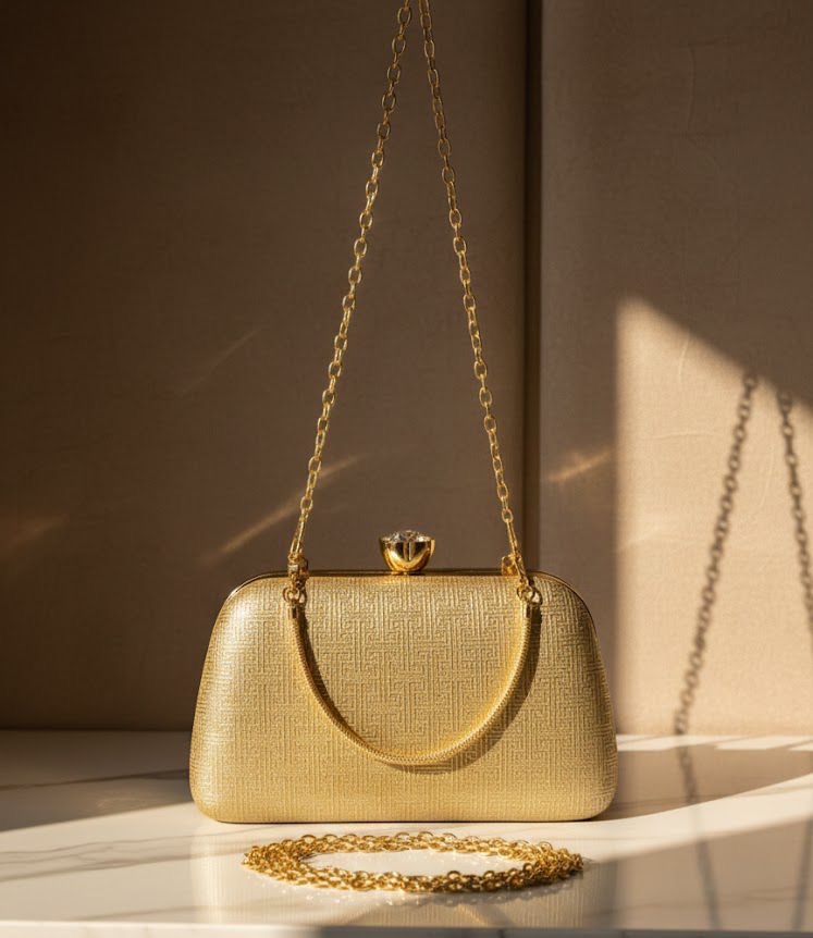 شنطة رسمية بتصميم أنيق ولمسة فخامة واضحة، مناسبة للمناسبات الرسمية والسهرات. بتعطي إطلالة مرتبة وراقية وتكمل اللوك بكل نعومة