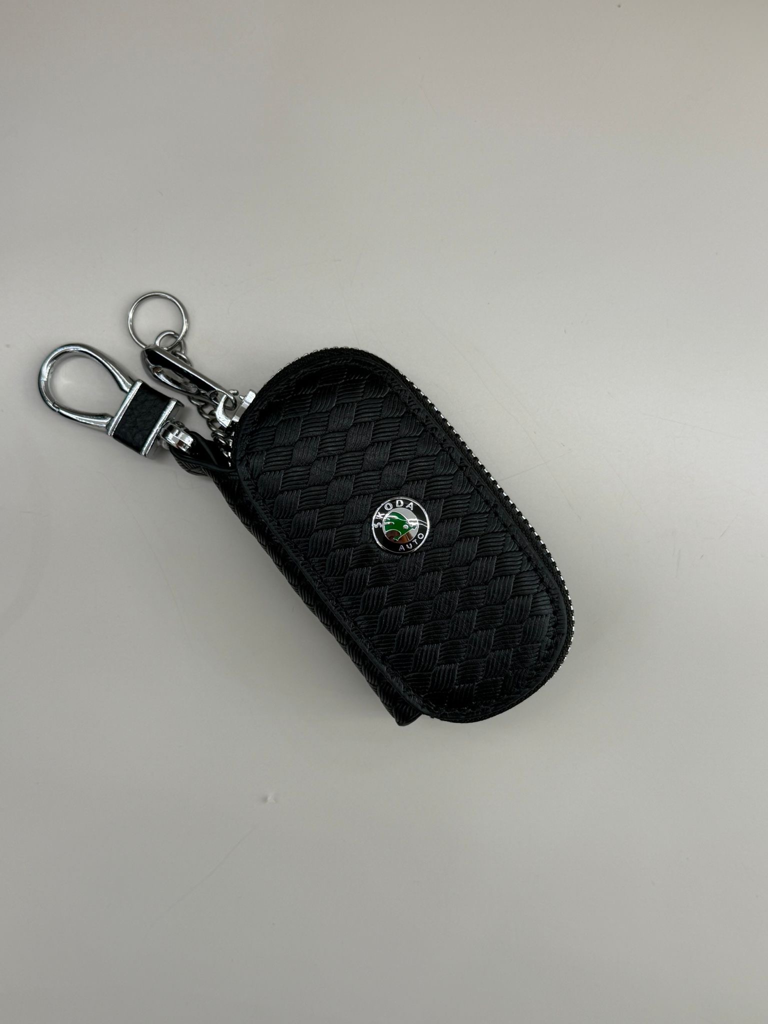 حافظة مفاتيح أنيق مصنوع من جلد عالي الجودة بنقشة فاخرة، مزوّد بسحاب ومشبك معدني لسهولة الاستخدام والحماية من الخدوش. تصميم عملي وأنيق للاستخدام اليومي