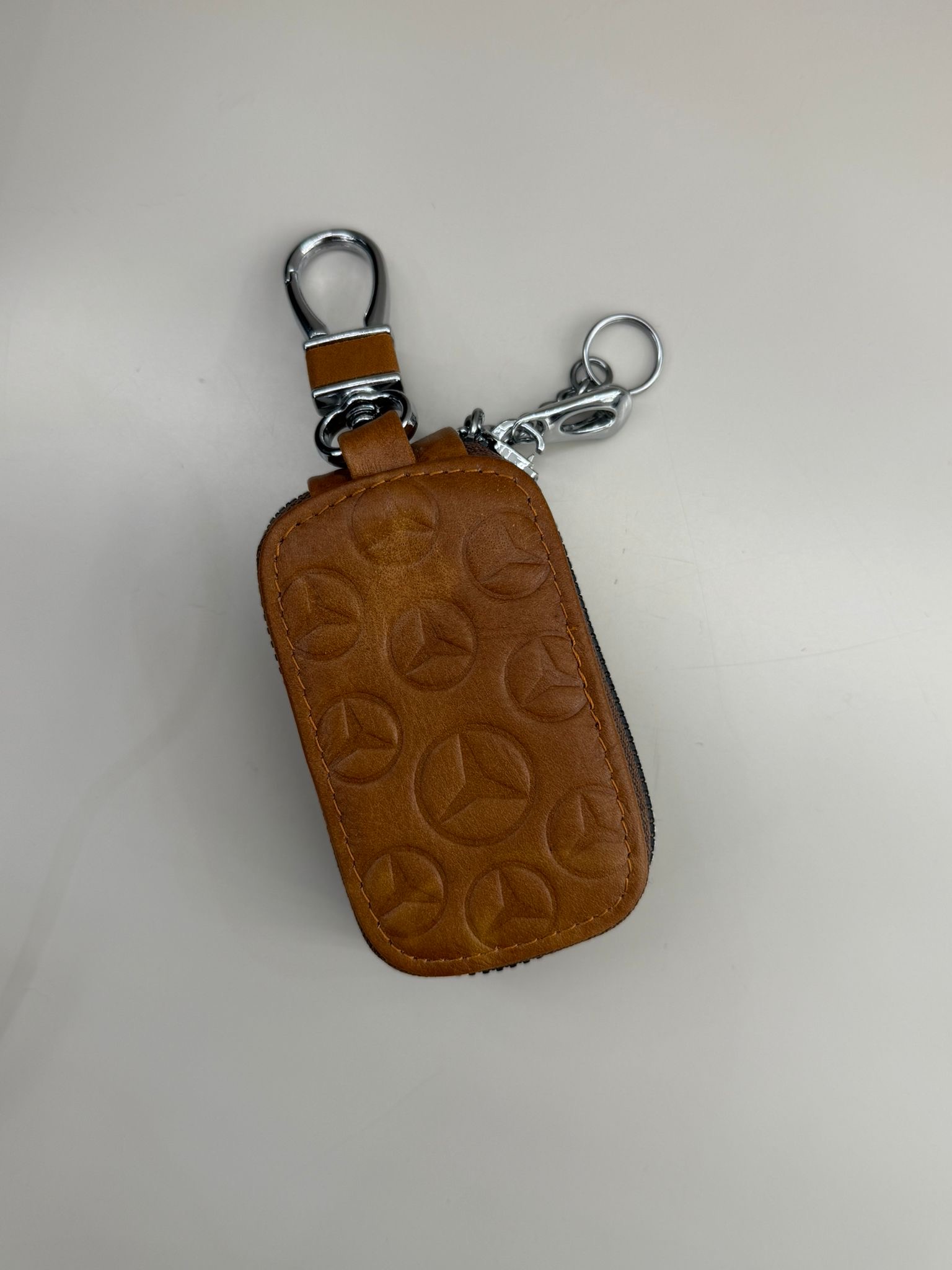 حافظة مفاتيح أنيق مصنوع من جلد عالي الجودة بنقشة فاخرة، مزوّد بسحاب ومشبك معدني لسهولة الاستخدام والحماية من الخدوش. تصميم عملي وأنيق للاستخدام اليومي