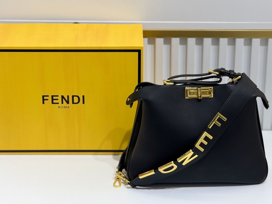 شنطة أنيقة من دار Fendi بتصميم فاخر يجمع بين البساطة والرقي. مصنوعة من جلد ناعم عالي الجودة بلون بني دافئ يعطيها لمسة كلاسيكية فخمة تناسب الإطلالات اليومية والرسمية. تتميز بقفل أمامي معدني ذهبي لامع يضيف تفصيلة جذابة، مع يد علوية مريحة وحزام كتف قابل للإزالة مزين بحروف ذهبية عصرية تضيف طابع مميز للشنطة.