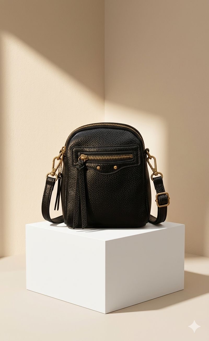 شنط كروس من الجلد، مع سحاب للإغلاق، وجيب أمامي، وحزام قابل للفصل، مصحوبة بحزام أصغر مطابق مع مشبك ذهبي