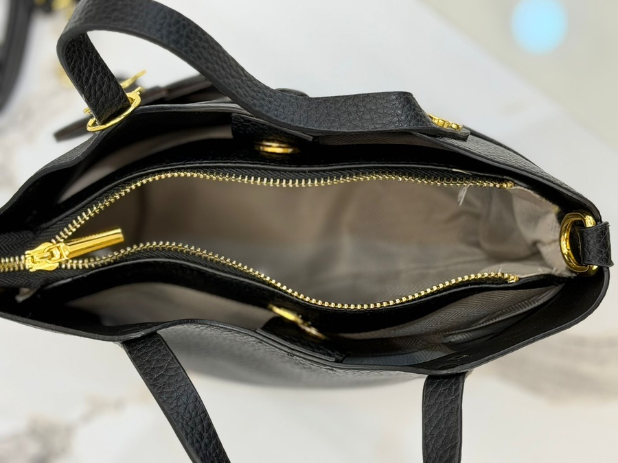 حقيبة أنيقة بتصميم عصري، مصنوعة من خامة جلدية فاخرة بملمس محبّب يعطيها لمسة راقية ومميزة. تتميز بمقبضين علويين لسهولة الحمل، بالإضافة إلى حزام طويل قابل للفصل لتُلبس كحقيبة كتف أو كروس حسب الرغبة.