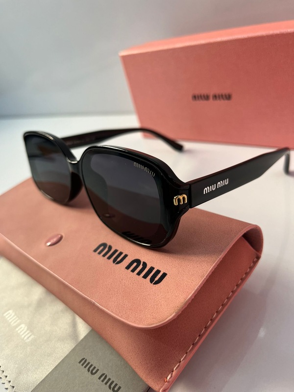 نظارة ميو ميو فاخرة بإطار عريض ولمسات ذهبية راقية على الجوانب، عدسات سوداء تمنحك دفء وأناقة، وتصميم كلاسيكي–مودرن يرفع اللوك بأيّ إطلالة بثقة ولمسة فخامة هادئة