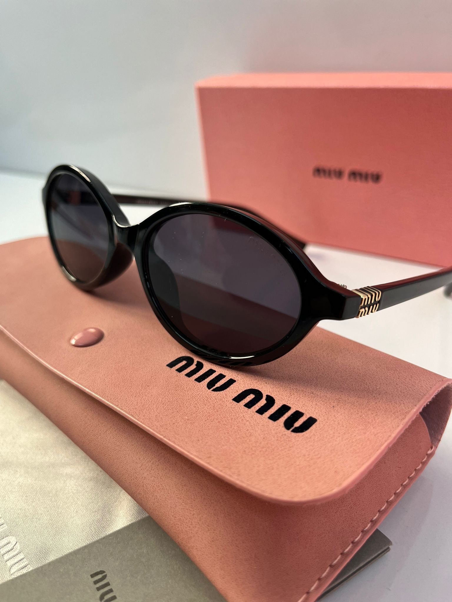 نظارة ميو ميو فاخرة بإطار عريض ولمسات ذهبية راقية على الجوانب، سوداء بنية تمنحك دفء وأناقة، وتصميم كلاسيكي–مودرن يرفع اللوك بأيّ إطلالة بثقة ولمسة فخامة هادئة
