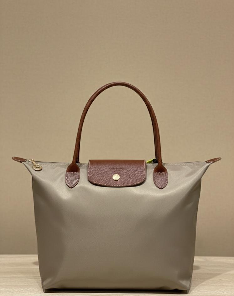 مصنوعة من خامة نايلون متينة مع مقابض جلد باللون البني مع غطاء جلدي