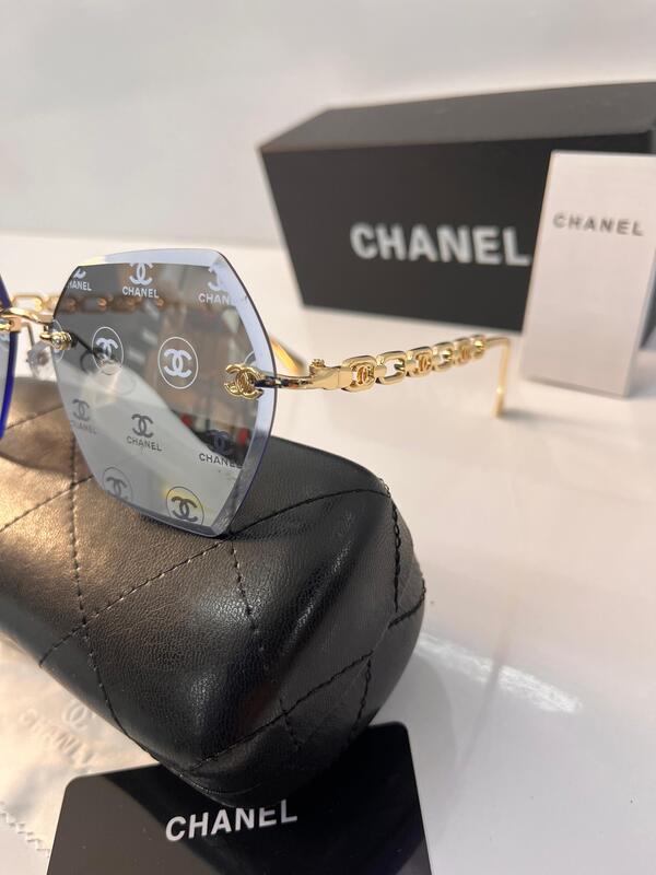 نظارة شانيل فاخرة بإطار رفيع ولمسات راقية على الجوانب، عدسات تدرج اللون الازرق تمنحك دفء وأناقة، وتصميم كلاسيكي–مودرن يرفع اللوك بأيّ إطلالة بثقة ولمسة فخامة هادئة