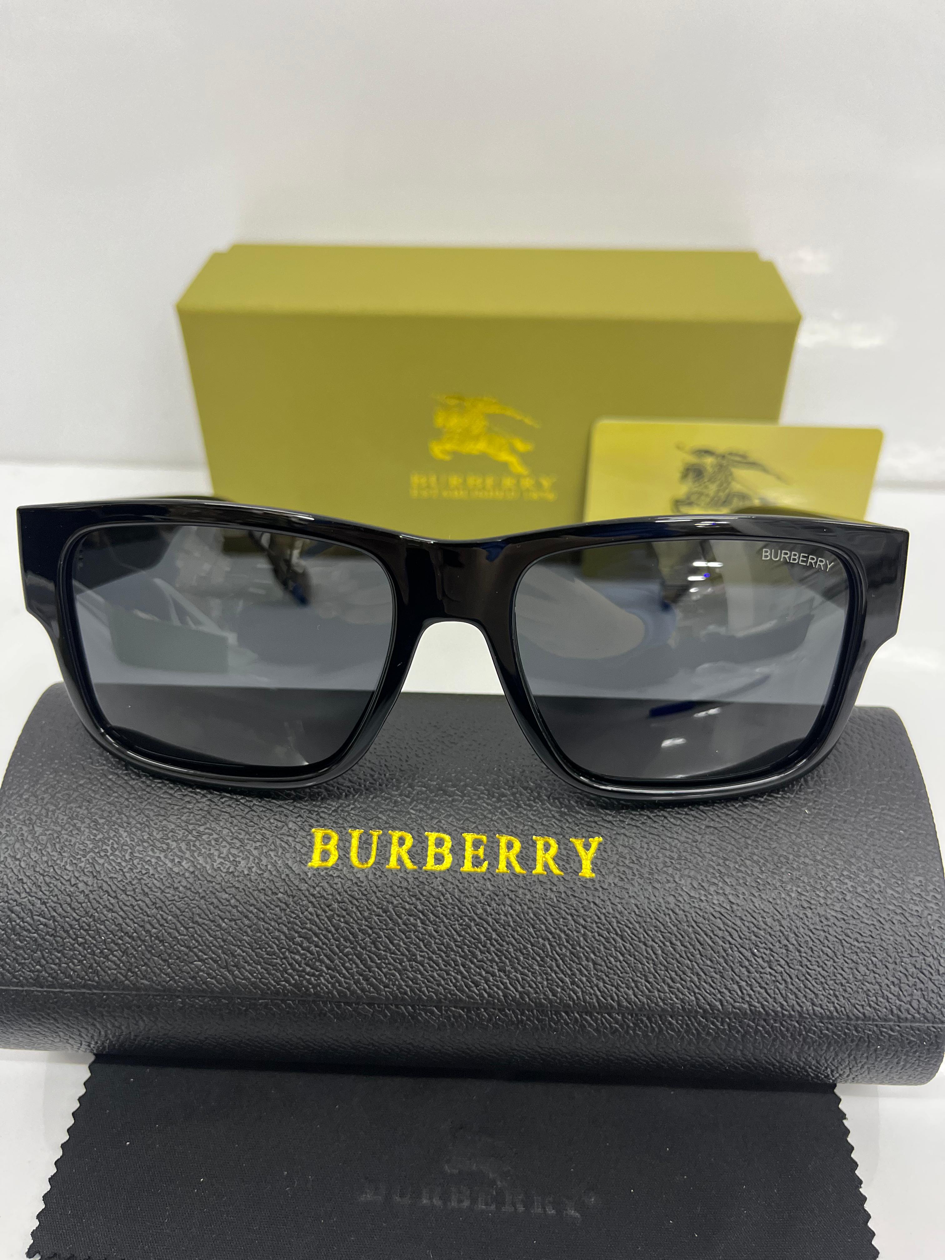 نظارة بيربري فاخرة بإطار عريض ولمسات راقية على الجوانب، عدسات سوداء تمنحك دفء وأناقة، وتصميم كلاسيكي–مودرن يرفع اللوك بأيّ إطلالة بثقة ولمسة فخامة هادئة