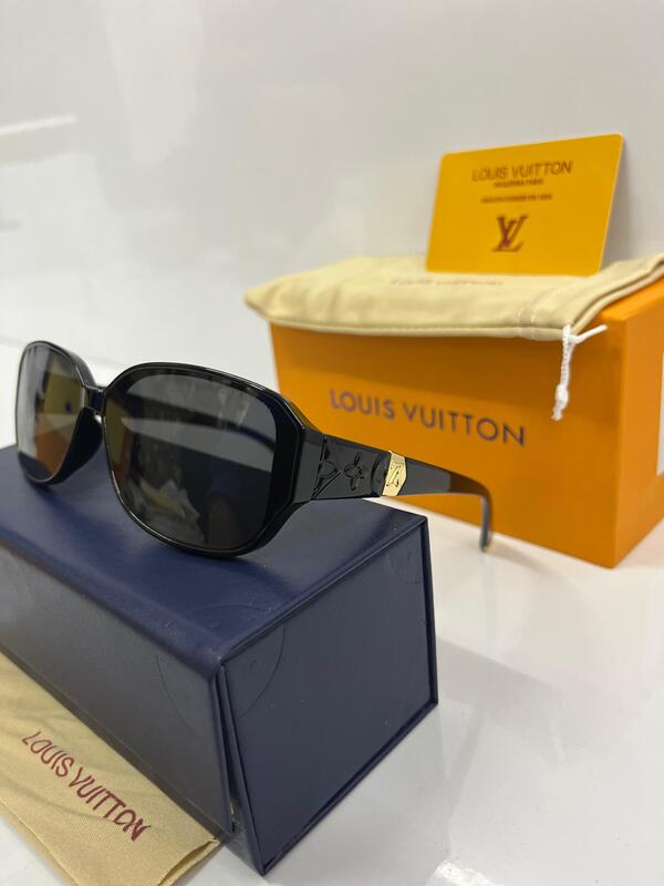 نظارة لويس فيتون فاخرة بإطار عريض ولمسات راقية على الجوانب، عدسات سوداء تمنحك دفء وأناقة، وتصميم كلاسيكي–مودرن يرفع اللوك بأيّ إطلالة بثقة ولمسة فخامة هادئة