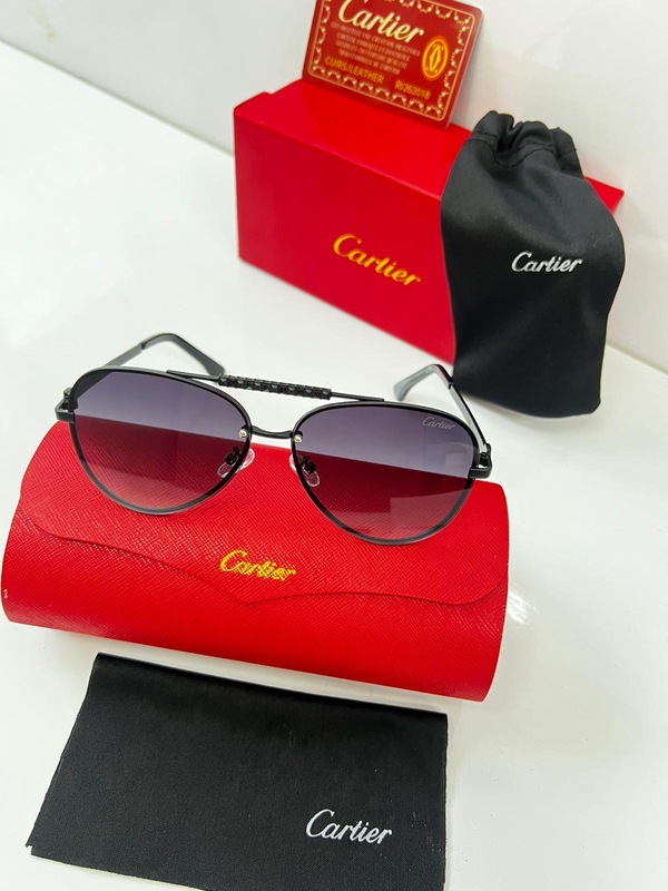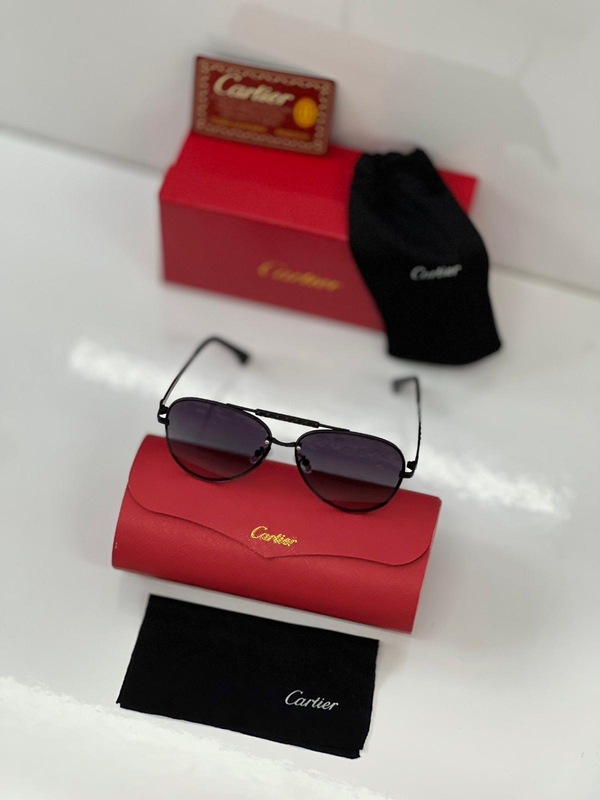 نظارة كارتير فخمة بإطار اسود بي اسود وعدسات اسود تميّزها تفاصيل ذهبية وشعار ميدوسا على الذراع. قطعة أنيقة تلفت النظر