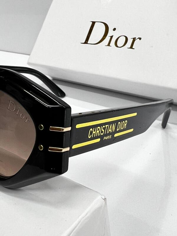 تتميز الذراعان بلون اسود ، مع تفاصيل جانبية معدنية ذهبية مختومة باسم العلامة التجارية christian dior باللون الاصفر