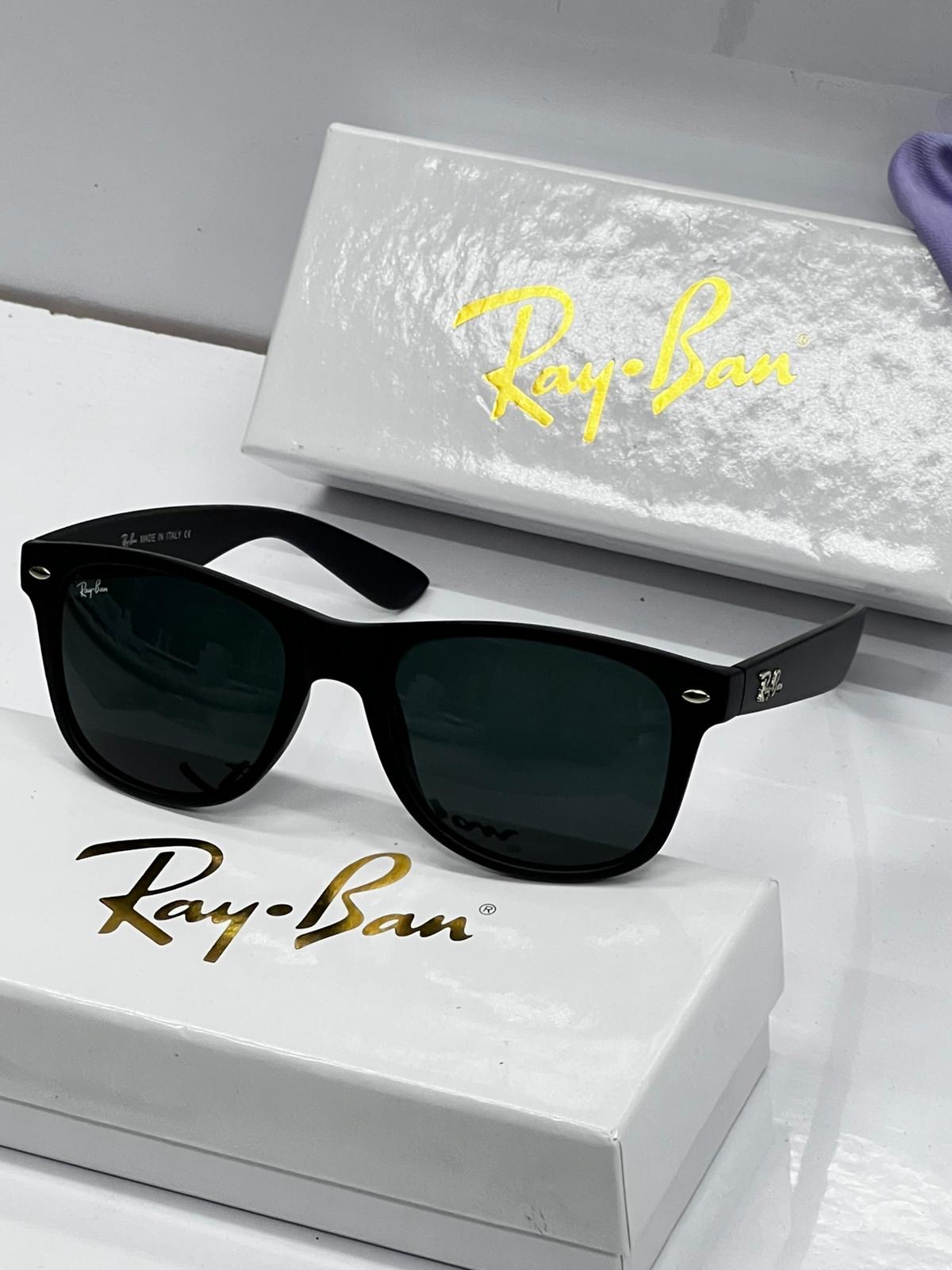 تتميز الذراعان بلون اسود ، مع تفاصيل جانبية معدنية فضية مختومة باسم العلامة التجارية ray ban باللون الفضي