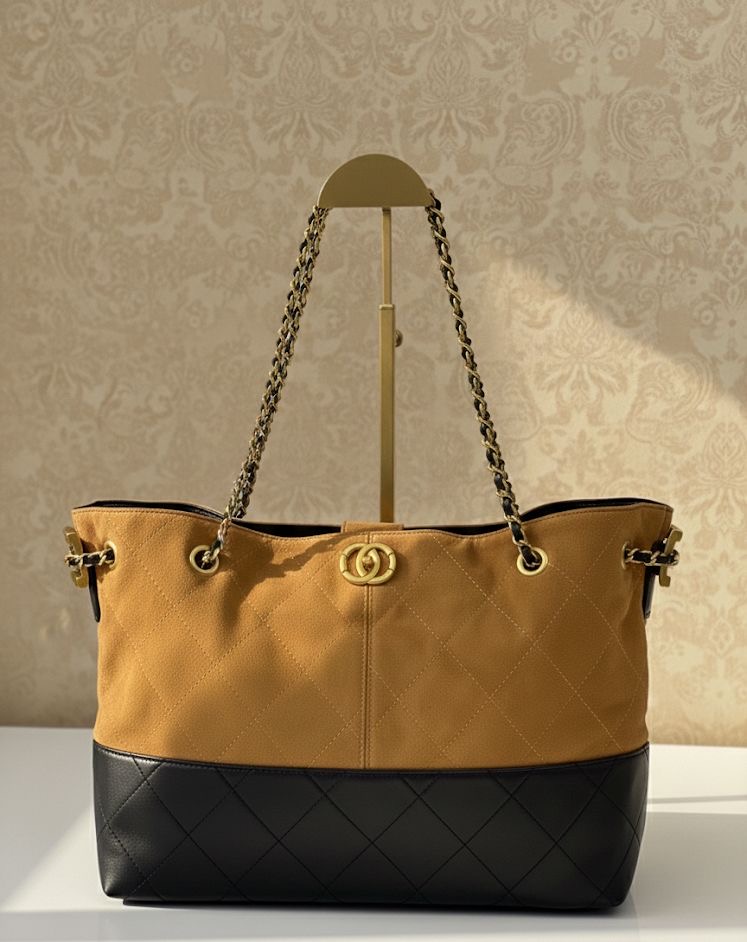 سلسال كتف ذهبي متين متداخل مع الجلد لمظهر أنثوي راقي ، سعة واسعة مناسبة للاستخدام اليومي، العمل، أو المشاوير