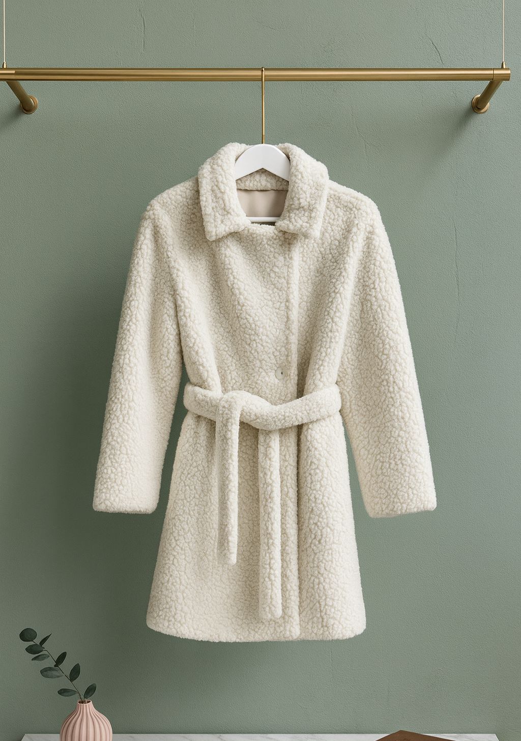 معاطف طويلة الأكمام وذا ملمس مميز، مزود بحزام