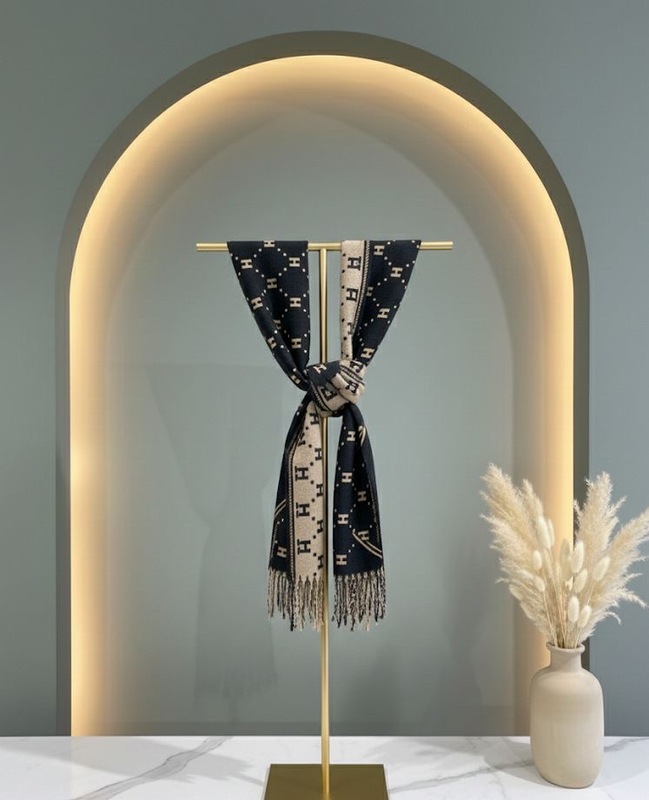 وشاح هيرمس داكن اللون بنمط الحرف "H" وشعار هيرمس،