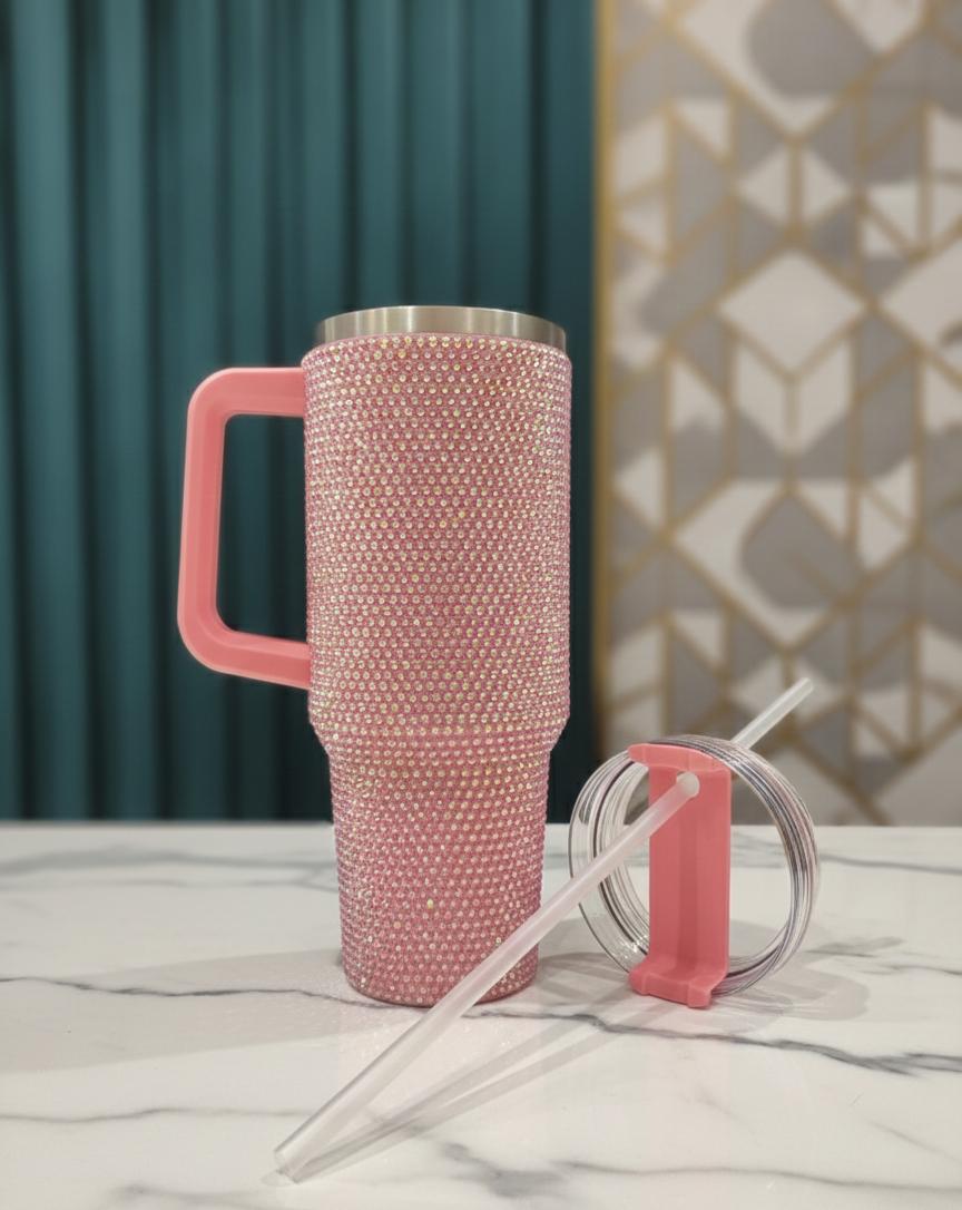 كاسات ستانلس حرارية أنيقة، مصنوعة من معدن قوي بيحافظ على حرارة المشروب لساعات. شكلها ناعم وعملي، ومزيّنة بسترس لامع بيعطيها لمسة فخمة وهيك لمعة بتلفت النظر. خفيفة بالحمل، وبتنسحب بسهولة للطلعات، الدوام، أو حتى للسيارة. بتيجي بغطاء محكم عشان ما تنكب، وجودتها عالية ومناسبة للاستخدام اليومي