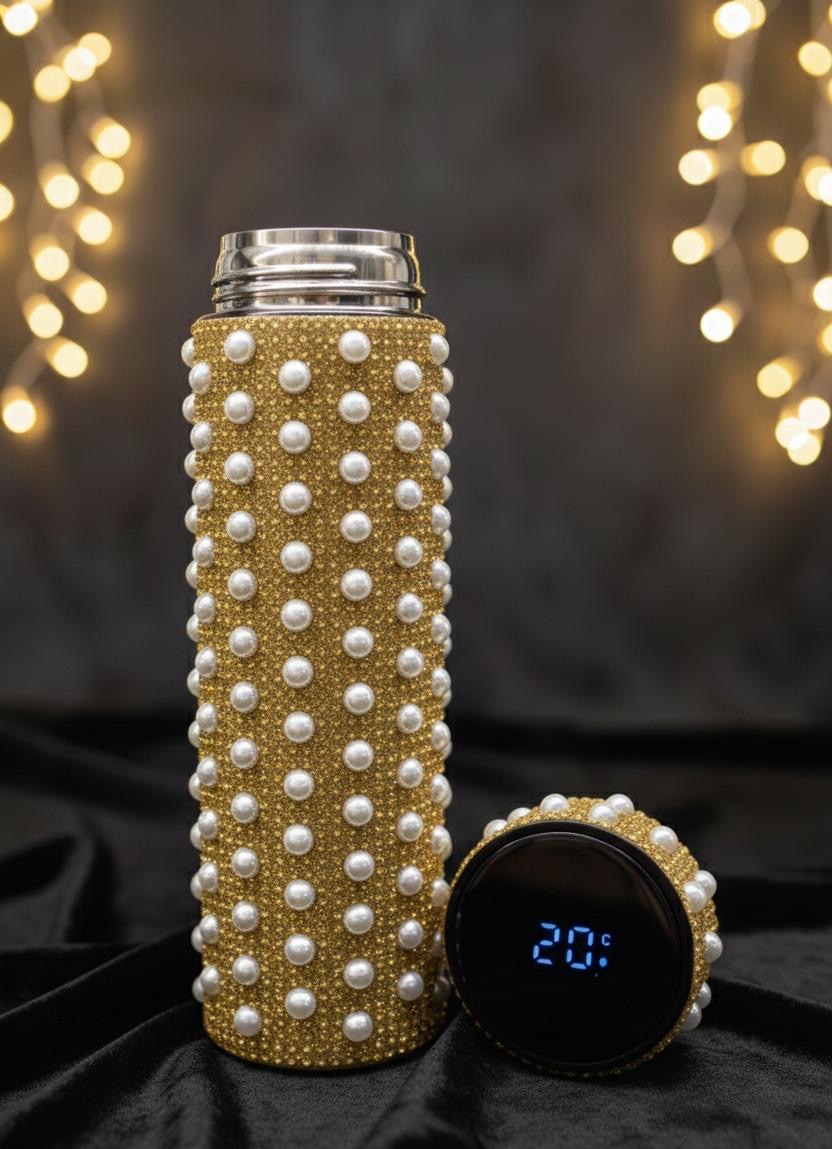 كاسات ستانلس حرارية أنيقة، مصنوعة من معدن قوي بيحافظ على حرارة المشروب لساعات. شكلها ناعم وعملي، ومزيّنة بحبات اللؤلؤ لامع بيعطيها لمسة فخمة وهيك لمعة بتلفت النظر. خفيفة بالحمل، وبتنسحب بسهولة للطلعات، الدوام، أو حتى للسيارة. بتيجي بغطاء محكم عشان ما تنكب، وجودتها عالية ومناسبة للاستخدام اليومي