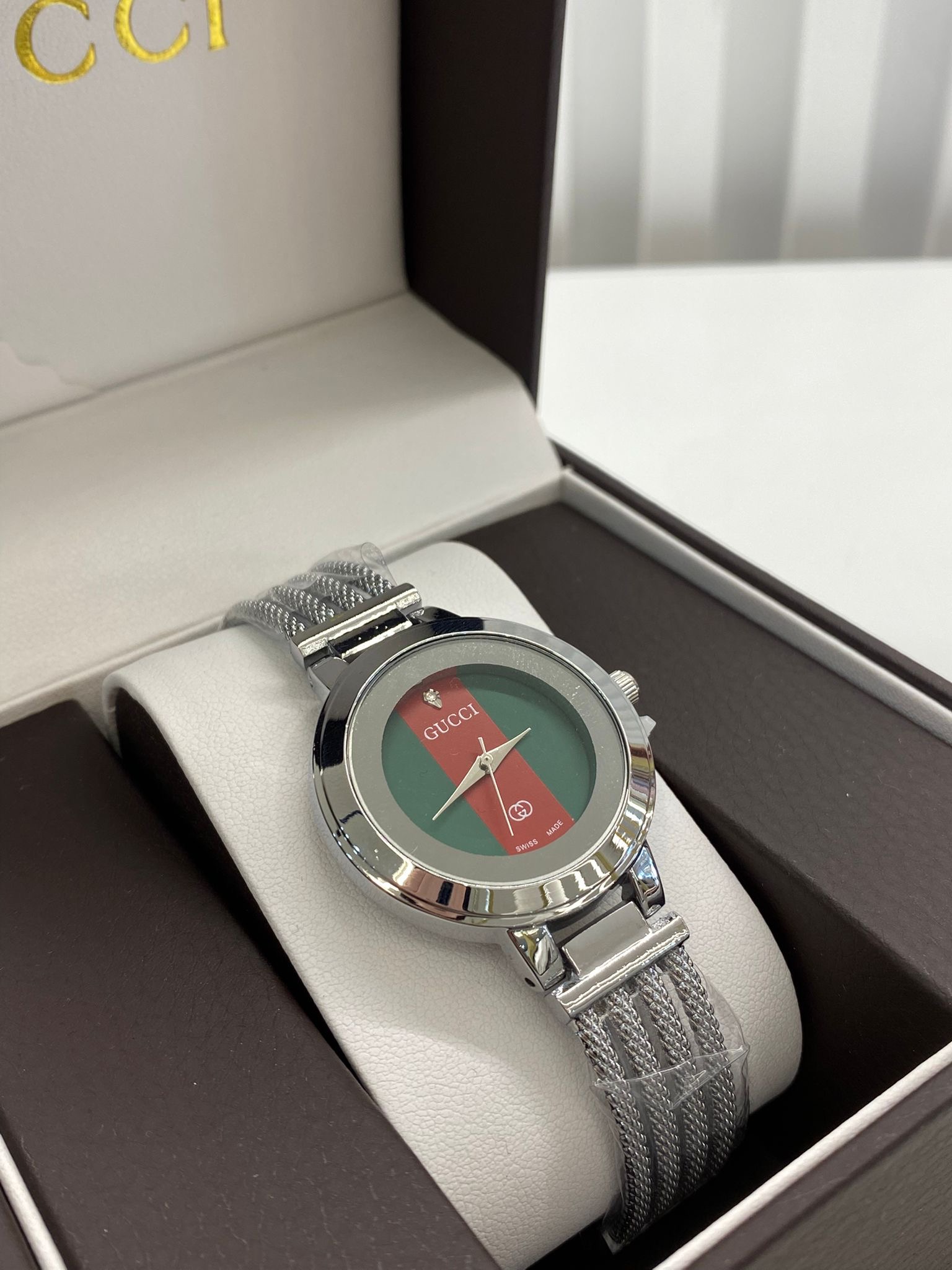 ساعة غوتشي بتجمع بين الفخامة الإيطالية والستايل العصري المميّز، تصميمها أنيق بتفاصيل راقية تعكس هوية غوتشي الجريئة. واجهتها مرتّبة وسوارها مريح، بتضيف لمسة فخامة واضحة لأي إطلالة سواء يومية أو رسمية. ساعة مثالية للي بحبوا التميّز والموضة مع لمسة رقي