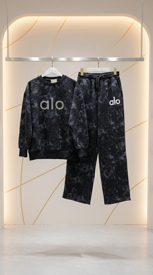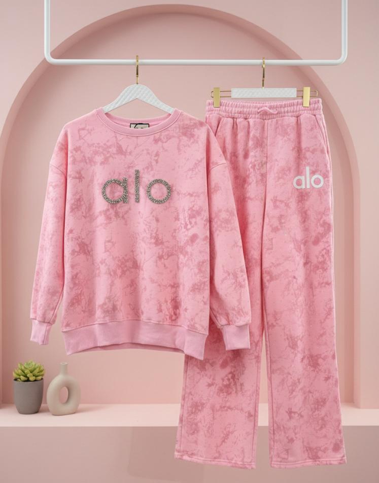 ترننج ماركا alo ناعم ومبطن من جوا، دافي ومريح للبس اليومي. قصّته مرتّبة وبتيجي بنقشة خفيفة بتعطيه شكل فخم. البلوزة عليها شعار alo والبنطلون مريح وعملي للبيت ولطلعة سريعة. خامته ناعمة وجودتها عالية، وبيتوفّق على كل ستايل. ومتوفّر بعدّة ألوان لتختاري اللي بناسبك