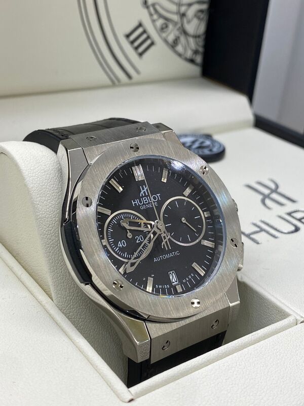 ساعة هوبلو بتصميم فاخر وقوي، بتجمع بين الطابع الرياضي والأناقة الراقية. واجهتها مرتبة بتفاصيل دقيقة، وهيكلها متين بيعكس جودة عالية وفخامة واضحة. بتلبس بكل راحة وبتناسب الإطلالات اليومية والرسمية، وبتعطي حضور مميز على المعصم.