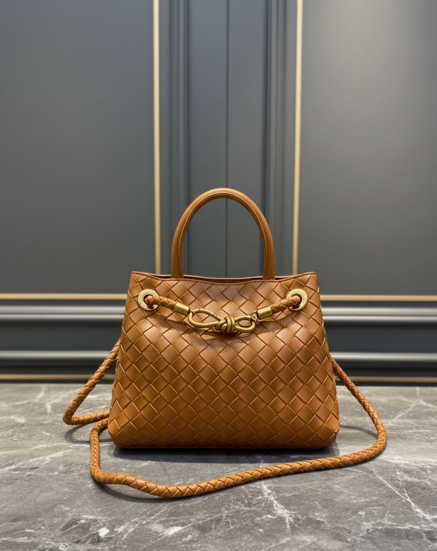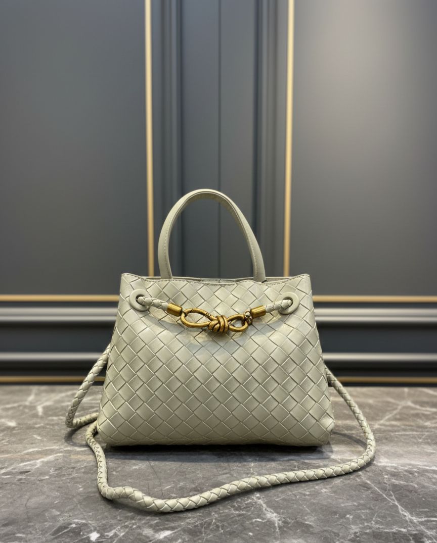 شنطة ستايل فاخر بتصميم جلد مجدول بعناية، بتجمع بين الأناقة والبساطة. مزينة بتفصيل معدني أنيق على الواجهة بيعطيها لمسة فخامة مميزة. عملية للاستخدام اليومي وبتزبط للمناسبات، معها يد علوية وحزام طويل لراحة أكبر، خيار مثالي للي بتحب الذوق الراقي والستايل المرتب