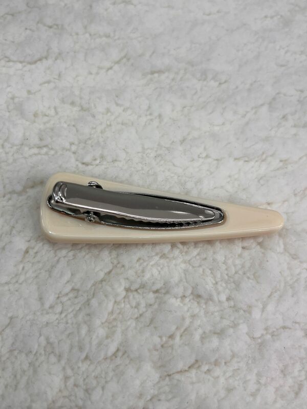مشبك شعر مصمم بتصميم عصري انيق من شانيل باللون البيج مع شعار العلامة التجارية باللون الذهبي