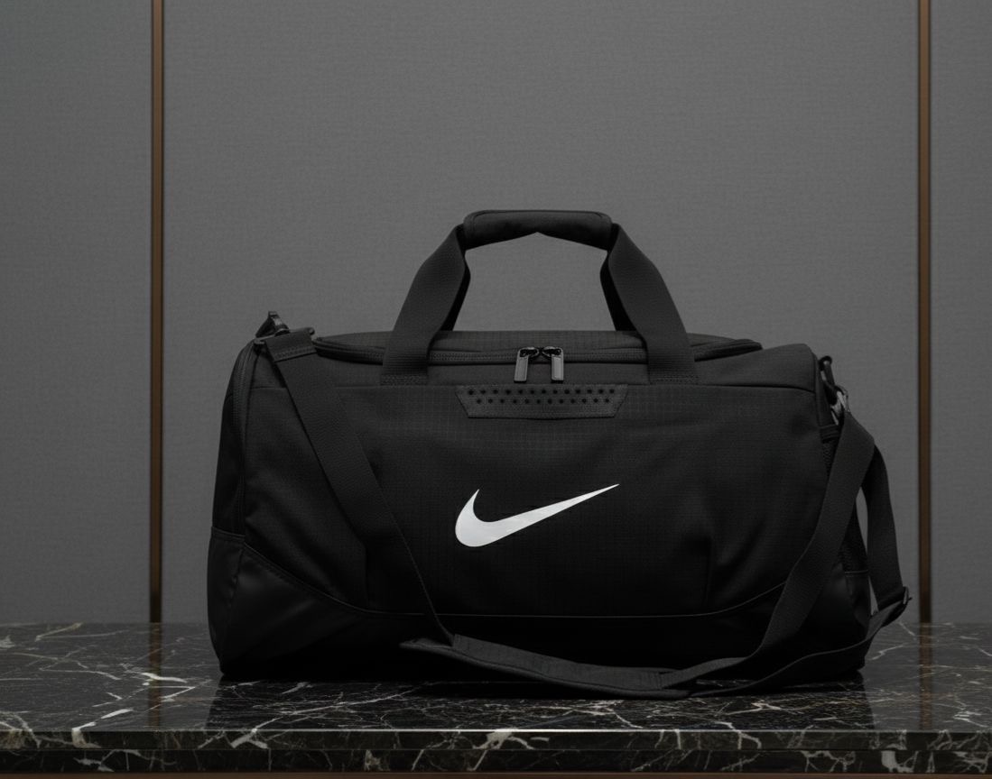 حقيبة رياضية من نايك بتصميم أنيق وعملي، مصنوعة من خامات متينة وعالية الجودة لتناسب الاستخدام اليومي والرياضي. ، مع شعار نايك في الواجهة لإطلالة رياضية مميزة.
