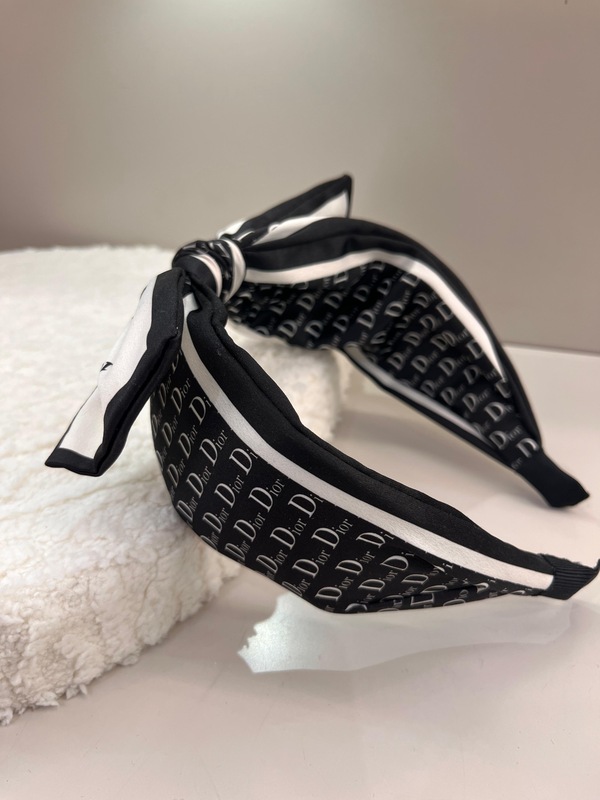 طوق ديور بتصميم فيونكة تتميز هذه بتصميمها العصري والفريد، مع نمطها الأبيض والأسود الجريء،