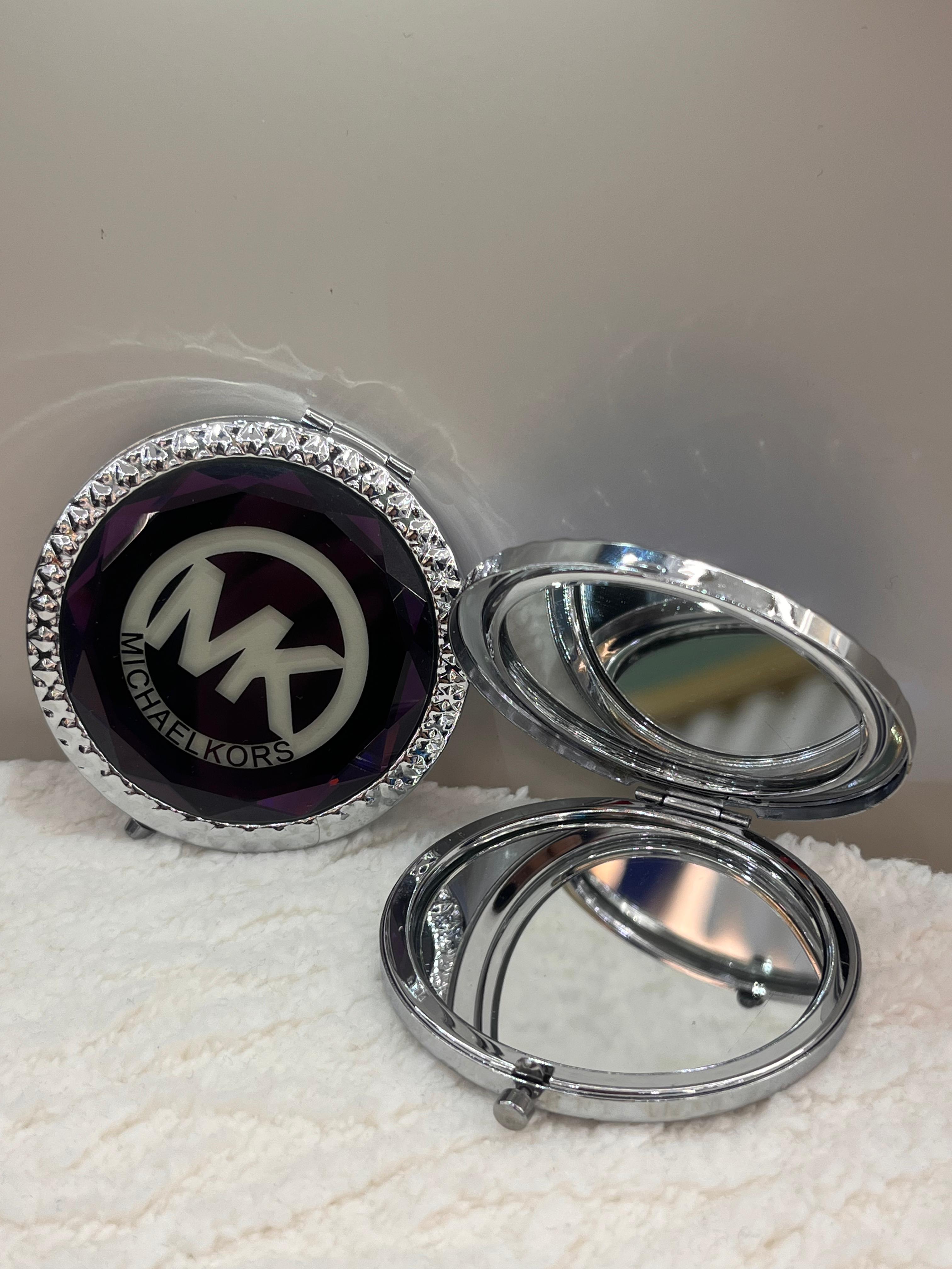 مرآة صغيرة من مايكل كورس مذهلة تمامًا، بتفاصيلها المتلألئة.