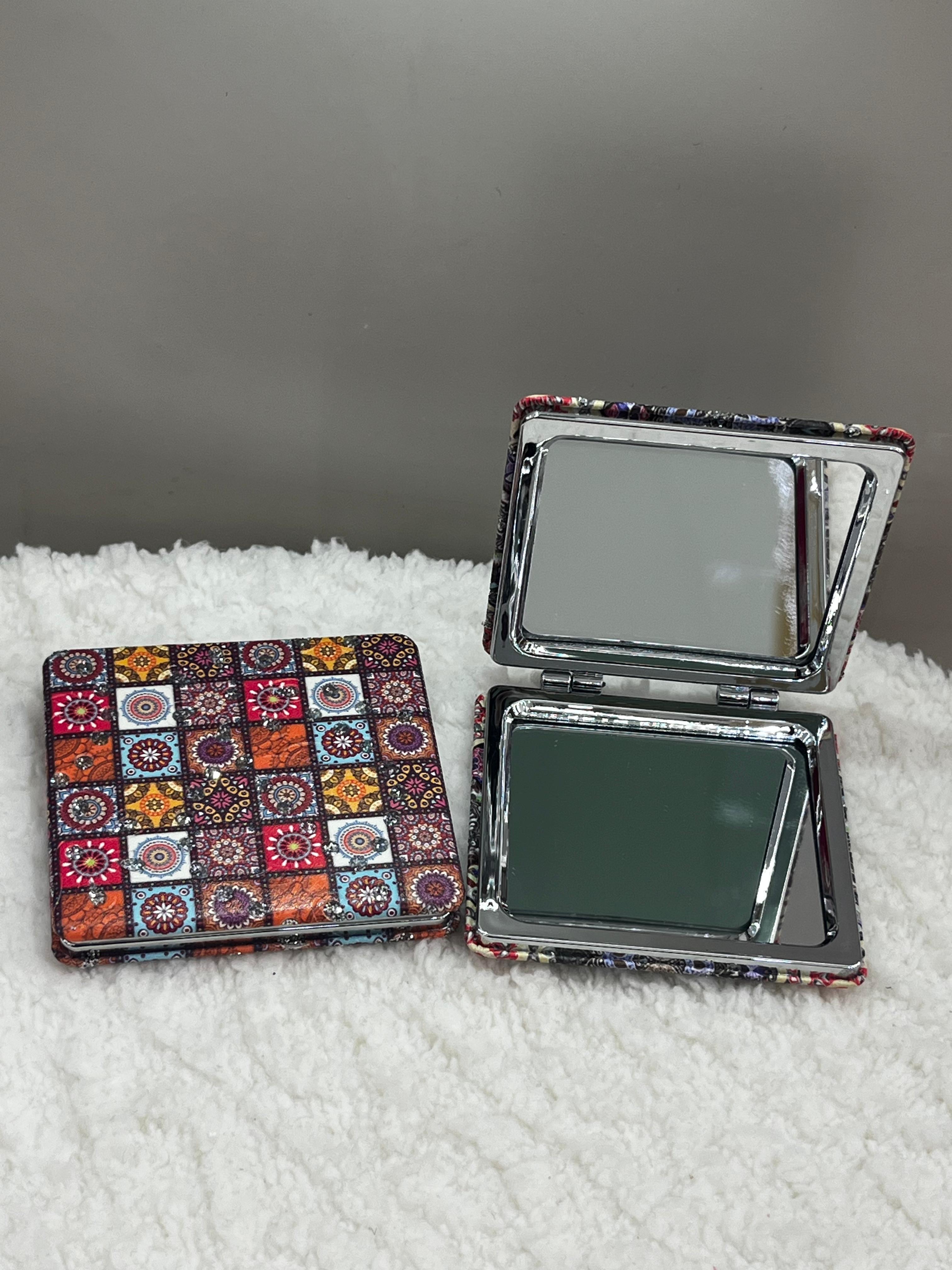 مرآة مكياج صغيرة بتصميم أنيق وعملي، تأتي بزخرفة Paisley ملوّنة تضفي لمسة فنية مميزة. مصنوعة بحجم مثالي يسهل حمله في الحقيبة أو الجيب، لتكون رفيقتك اليومية في أي وقت ومكان