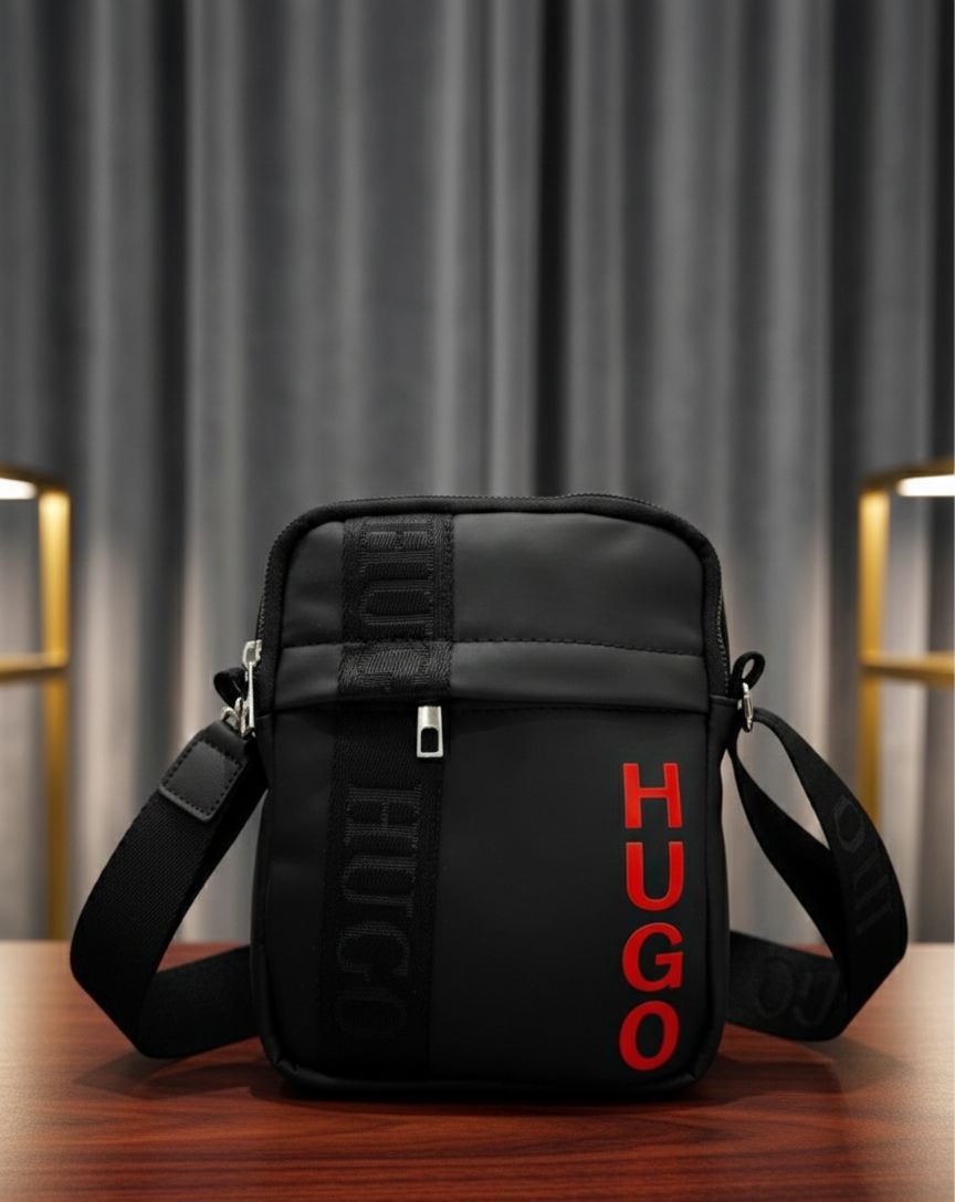 شنطة كروس رجالي من ماركة HUGO بتصميم عصري وعملي، مصنوعة من خامة عالية الجودة بلون أسود أنيق مع شعار HUGO باللون الأحمر ليعطي لمسة جريئة وفخمة. تتميز بحجم مناسب للاستخدام اليومي، مع سحاب إغلاق متين وحزام كتف قابل للتعديل لراحة أكبر. خيار مثالي للطلعات اليومية، المشاوير السريعة، أو ستايل كاجوال مرتب.