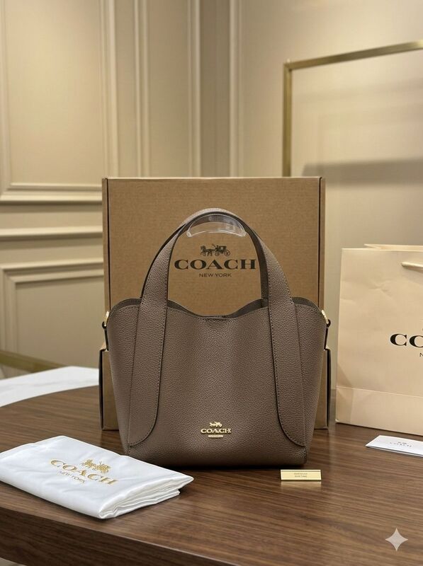 تتميز الحقيبة بمقبض علوي مريح للحمل اليومي، بالإضافة إلى حزام كتف قابل للفصل والتعديل لاستخدامها كحقيبة كتف أو كروس بودي حسب رغبتك. يتوسط الواجهة شعار COACH المعدني بلون ذهبي أنيق، مع إكسسوارات ذهبية تضيف فخامة إضافية