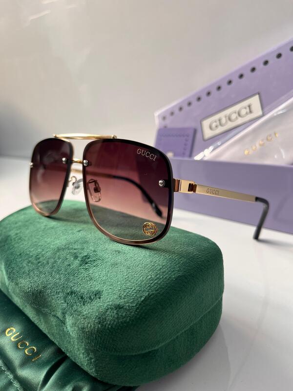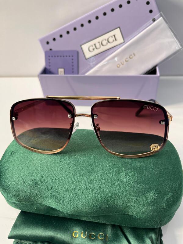 نظارة جوتشي فاخرة بإطار رفيع ولمسات راقية على الجوانب، عدسات تدرج اللون الزهري تمنحك دفء وأناقة، وتصميم كلاسيكي–مودرن يرفع اللوك بأيّ إطلالة بثقة ولمسة فخامة هادئة