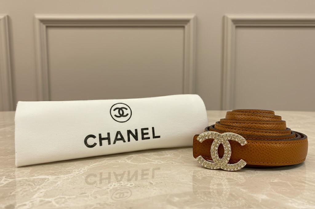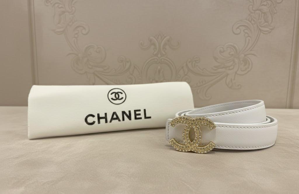 • الإكسسوارات المرافقة: يأتي مع كيس قماشي أبيض يحمل شعار CHANEL، مخصص لحفظ الحزام وحمايته.