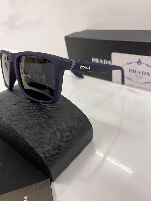 نظارة برادا فاخرة بإطار رفيع ولمسات راقية على الجوانب، عدسات سوداء تمنحك دفء وأناقة، وتصميم كلاسيكي–مودرن يرفع اللوك بأيّ إطلالة بثقة ولمسة فخامة هادئة