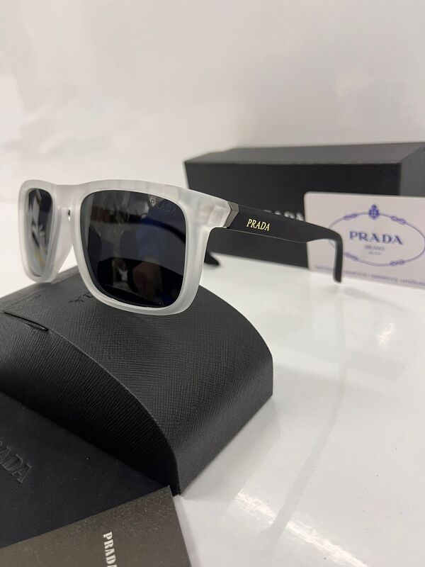 نظارة برادا فاخرة بإطار رفيع ولمسات راقية على الجوانب، عدسات سوداء تمنحك دفء وأناقة، وتصميم كلاسيكي–مودرن يرفع اللوك بأيّ إطلالة بثقة ولمسة فخامة هادئة