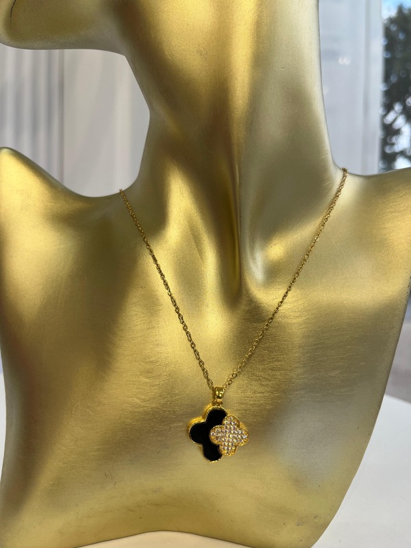 مصمم على شكل وردتين حجم صغير باللون الفضي ستراس والاخرى حجم اكبر باللون الاسود