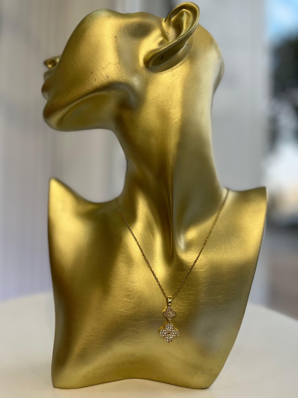سنسال ذهبي على شكل وردتين منفصلات باللون الفضي