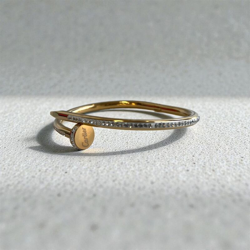 وفي مقدمة الاسوارة شكل دائري صغير مختوم باسم العلامة التجارية CARTIER